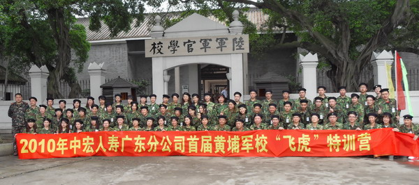 军训基地2010年2月26-27日中宏保险广东分公司第一期黄埔军校飞虎特训营,顺利举行,并取得圆满成功;